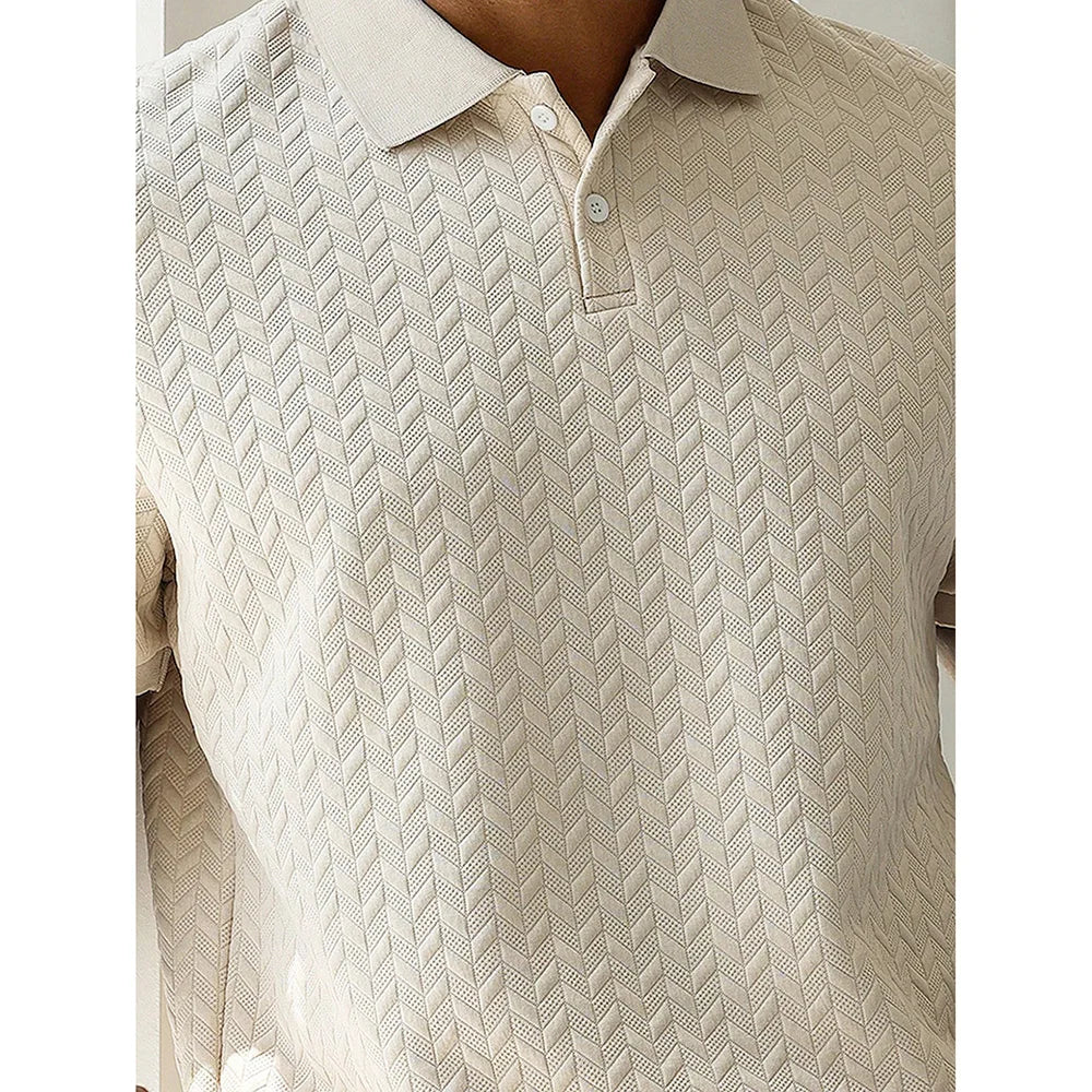 De klassieke polokraag en subtiele knoopsluiting geven het shirt een tijdloze elegantie, terwijl de moderne pasvorm zorgt voor een strak en eigentijds silhouet. De jacquardstructuur voegt een verfijnd detail toe dat je look direct een luxe boost geeft.